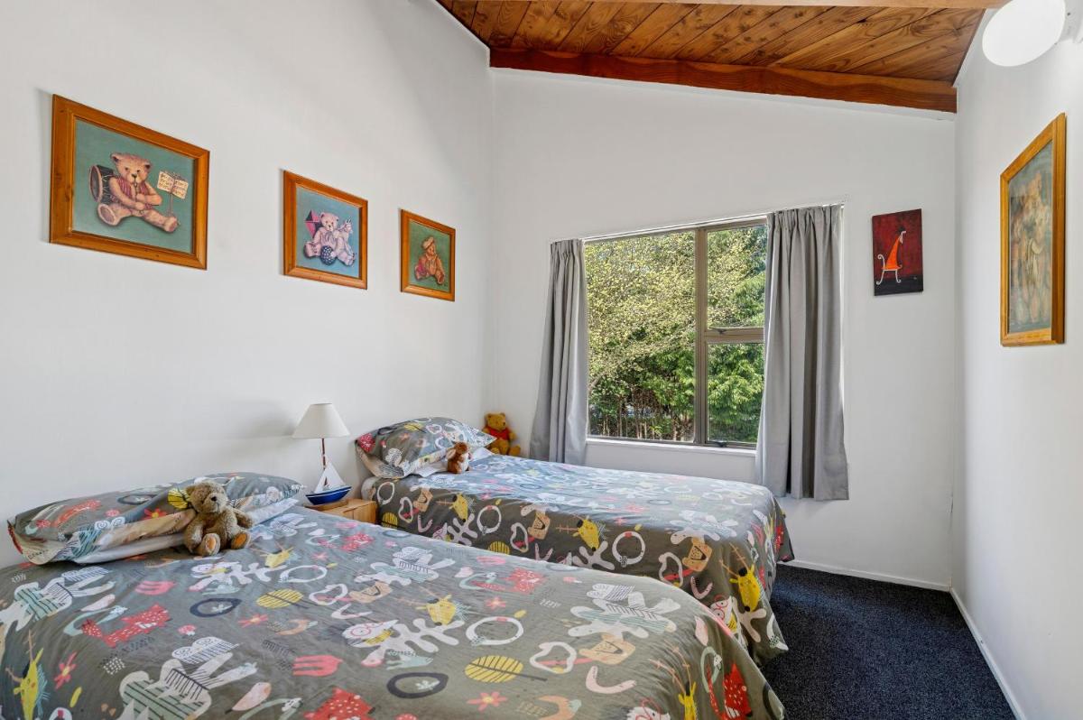 Riverbed Lodge - Lake Taupo Home, situated in Turangi, offers a tranquil getaway within easy reach of volcanic activity, scenic falls, and bustling events centers. Enjoy 7 spacious bedrooms, a fully equipped kitchen with modern amenities, and private access to the property. Located approximately 23 miles from Great Lake Convention Centre, 25 miles from Taupo Events Centre, and 25 miles from Huka Prawn Park, this vacation home provides a perfect base for exploring the region's attractions. Guests can fish in nearby waters or relax in the lush garden. Parking is available upon request, ensuring a stress-free stay. Close proximity to the Crazy Catz Adventure Park adds excitement to every day. Just 19 miles from Taupo Airport, making travel convenient.
