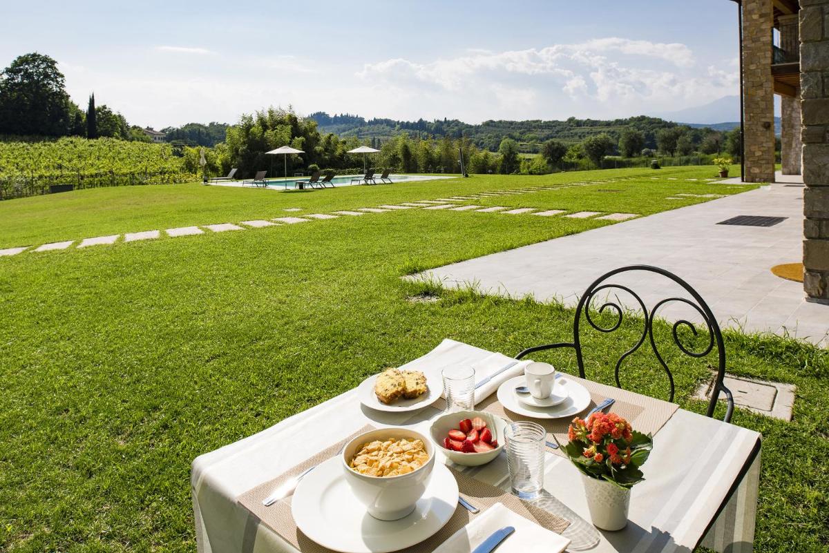To kick off each day, guests are greeted by a hearty buffet breakfast, offering a range of options to suit various tastes. Nestled along the picturesque landscape, the property's proximity to Gardaland makes it a popular destination for families and couples alike, particularly appreciated for its serene setting and exceptional service rating.