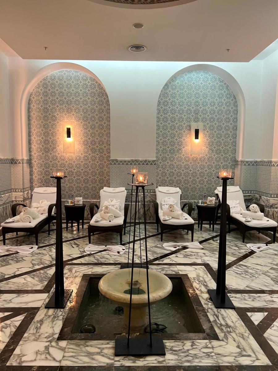 The hotel features a comprehensive wellness program, complete with a hammam, enhancing relaxation opportunities. Free Wi-Fi is accessible throughout the property, providing a seamless digital experience. A dedicated 24-hour front desk ensures smooth check-in and check-out procedures, while complimentary airport transportation adds convenience for arriving guests.
