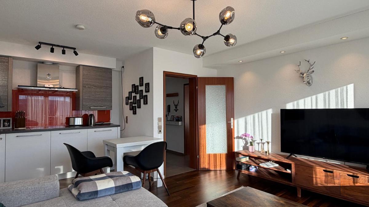 Stilvolle Wohnung in idyllischer Lage, offering a serene setting near Bad Säckingen, boasts accommodations equipped with outdoor seating, a terrace with breathtaking garden views, and a modern kitchen complete with appliances such as a dishwasher and toaster. Guests can enjoy table tennis facilities and free Wi-Fi throughout their stay. Non-smoking rooms provide a peaceful retreat, and each space is spacious at 50 square meters. The apartment comes with a private bathroom featuring a walk-in shower and bathrobes, ensuring comfort during stays. Accessible via roads measuring approximately 19 miles north of Roman Town of Augusta Raurica and 24 miles south of Schaulager, this property offers a delightful escape into nature's embrace.