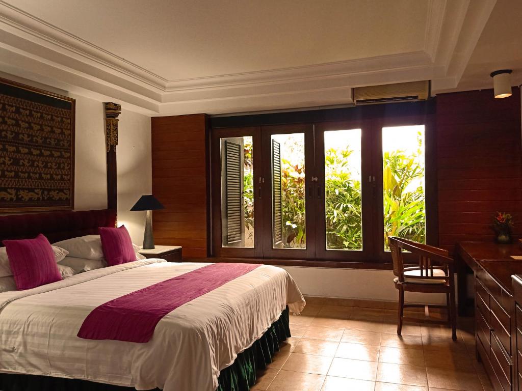 RUNA House Of Design in Ubud boasts a stunning layout offering both breathtaking views of lush gardens and serene mountain landscapes. This charming bed and breakfast features ample amenities designed to enhance your stay, including a spacious balcony, a cozy seating area, and a modern kitchenette complete with essentials such as an oven, refrigerator, and microwave. Guests will appreciate the luxury of private bathrooms equipped with bidets and plush bathrobes, along with complimentary toiletries and robes. Enjoy the convenience of a fully stocked flat-screen TV, perfect for watching local specials and enjoying a cup of fresh coffee or tea.