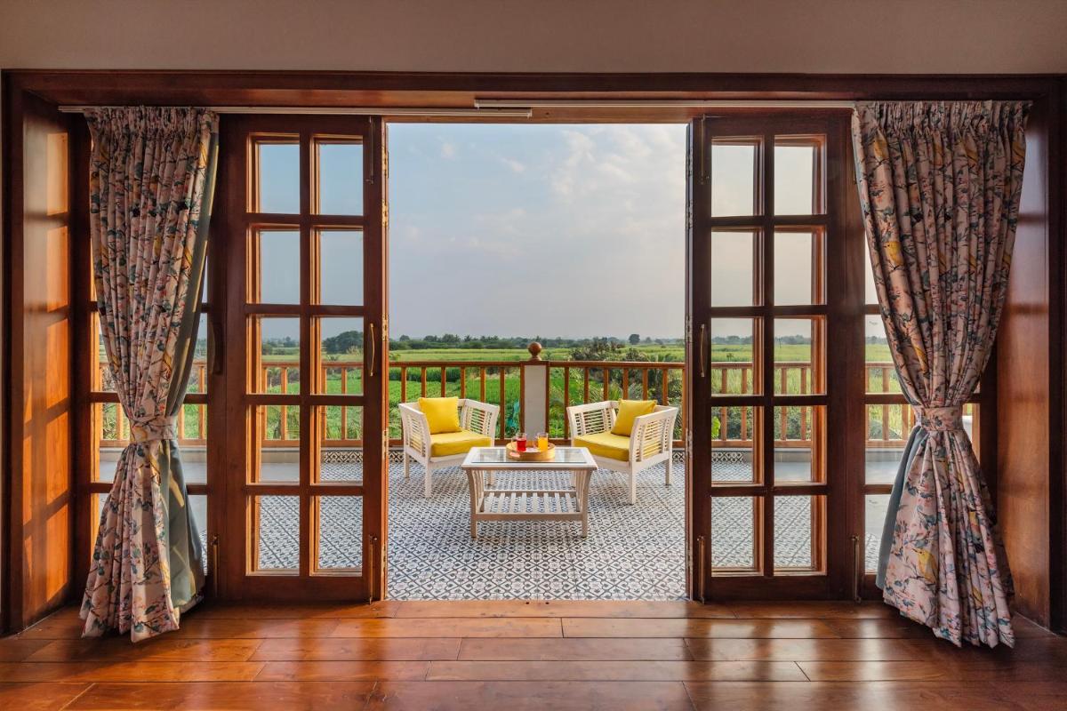 SaffronStays Happy Fields, located in Pune, offers a luxurious farmstay featuring an expansive villa equipped with three bedrooms, a comfortable living area, and three bathrooms. Guests enjoy free toiletries, towels, and bed linens throughout their stay. The villa's outdoor terrace provides stunning views, perfect for relaxing after a day exploring nearby attractions. The villa's proximity to the University of Pune makes it an ideal base for students seeking cultural immersion.
