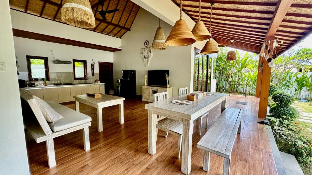 Guests can enjoy breathtaking views from the villa's terrace, which overlooks the lush surroundings. For those looking to explore further, Jemeluk Beach is just a mere 1.6 miles away, offering a serene retreat where one can unwind after days of exploration or leisurely walks through the surrounding nature. The villa's tranquil atmosphere invites visitors to relax in the garden or the shared lounge area, fostering moments of peace and rejuvenation.
