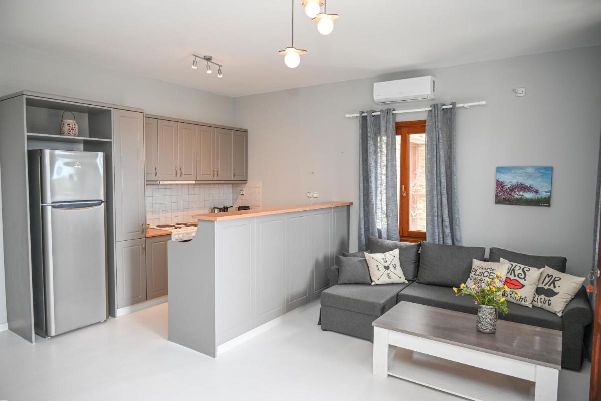Church of Kechrovouni lies approximately 2.7 miles from the apartment, while the impressive Monument of Elli is situated nearby at 2.9 miles. The property features a well-equipped apartment with one-bedroom accommodation, offering a comfortable living space with a fully furnished kitchen equipped with an oven and a coffee maker. The open-plan living area invites residents to relax amidst scenic sea views from the balcony, complemented by outdoor seating areas.
