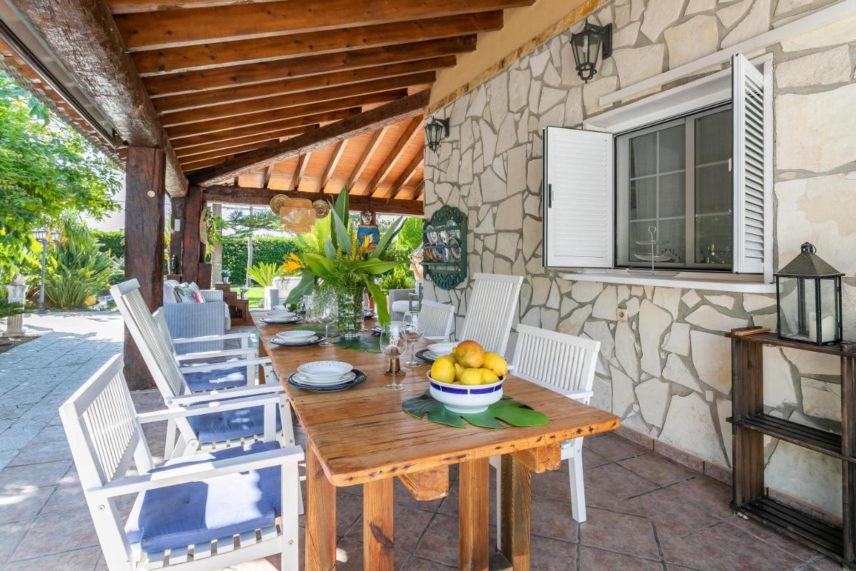 The villa comes with 4 bedrooms, 2 bathrooms, bed linen, towels, a TV, a fully equipped kitchen, and a terrace with garden views.