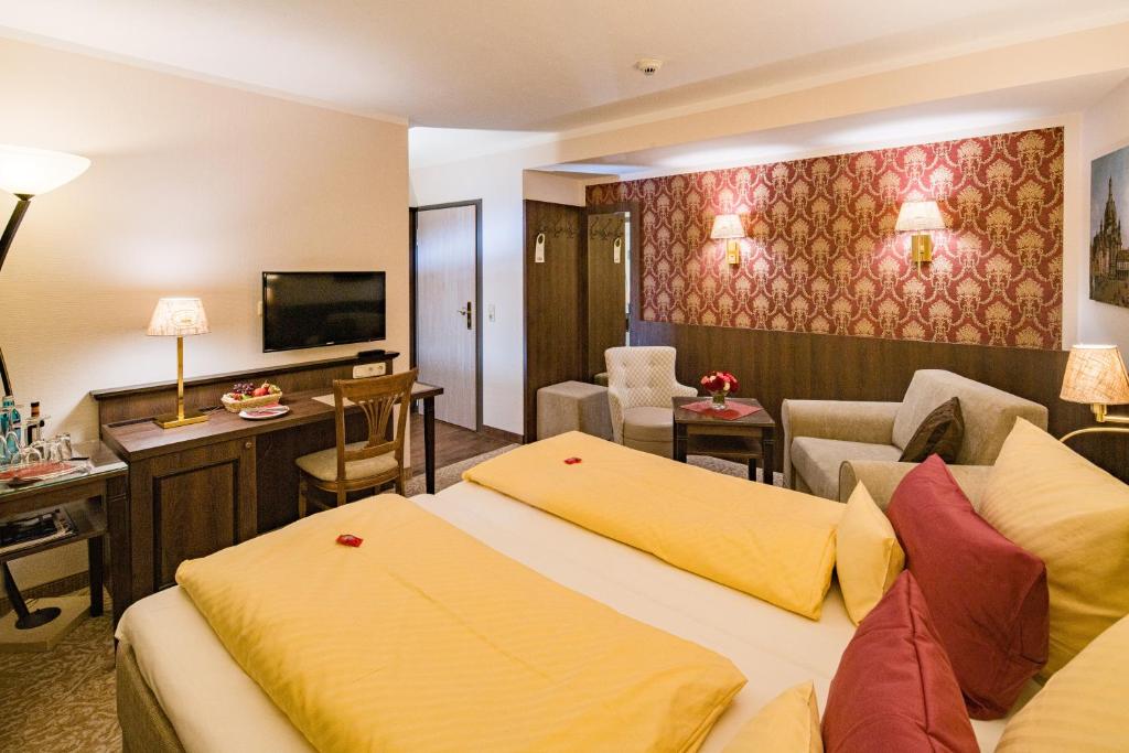 Each room at the Schlosshotel Klaffenbach boasts a cozy ambiance characterized by original design elements combined with modern conveniences. Guests can expect spacious accommodations equipped with well-appointed bathrooms designed for comfort and relaxation.