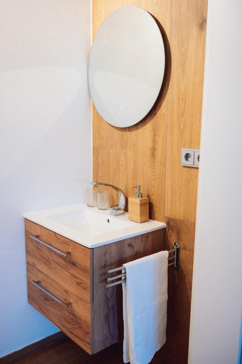 In addition to the convenience of a private bathroom and complimentary toiletries, Suite 13 Apartment mit Netflix provides residents with a luxurious touch through the inclusion of slippers and a hairdryer. Guests can rest assured knowing that towels and bed linens will be freshly laundered upon arrival, ensuring a comfortable retreat at every turn.