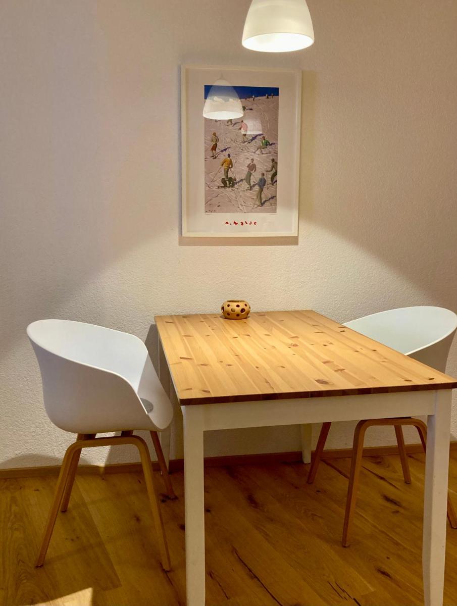 The Schönes Studio features a newly renovated historic building constructed in 1999. It offers comfortable accommodation with stunning mountain views. Key amenities include free Wi-Fi, ample free private parking, a fully functional kitchen with essential appliances, and a satellite flat-screen TV. The apartment has a non-smoking room policy, fitness center, indoor swimming pool, spa, and skiing opportunities.