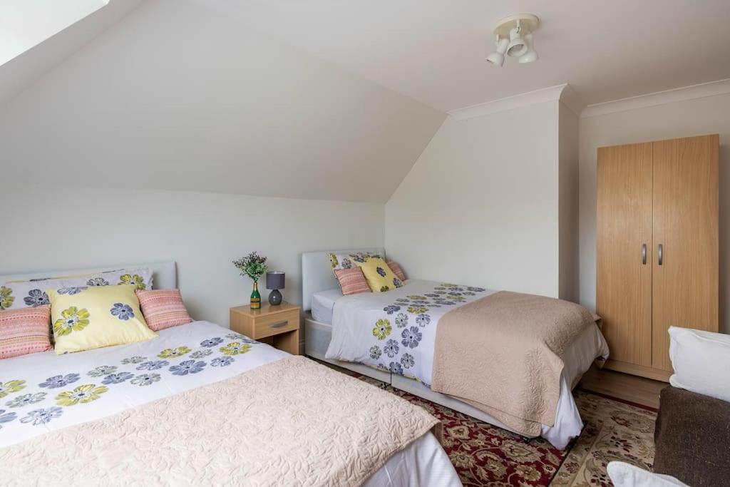 A large accommodation easily doubles the number of people that can stay. Plenty of room for travel cots and high chairs. A large kitchen, 4 toilets/3 bathrooms. Parking for 4 cars. Private garden and field for sunbathing and family gathering. The beach and a Pub are a walk away. The house is tucked away in an exclusive area. Restaurants, Fish and Chips shops, Clacton Pier Caffe Greek restaurants less than a mile away. The bustling Clacton-on-Sea Town Centre is a 5 minutes walk.