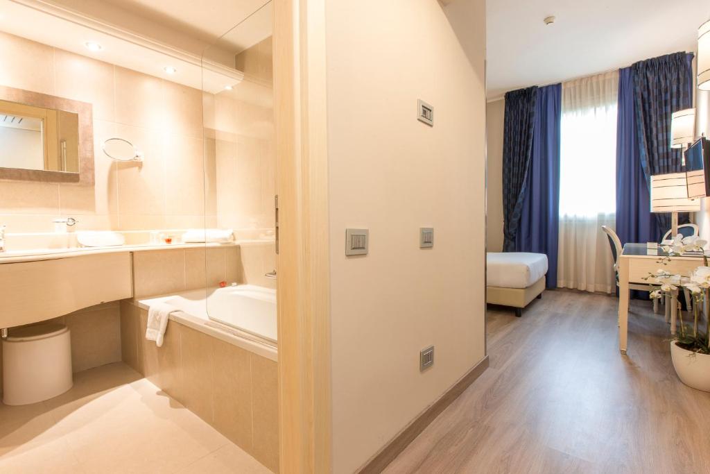 Just Hotel Lomazzo Fiera is conveniently situated along the Milan-Como motorway, nestled within proximity to the bustling Rho-Pero Trade Fair Center and just a short drive from Milan's prestigious Malpensa International Airport. This contemporary 4-star establishment boasts an array of amenities designed to enhance guest comfort and convenience. Each elegantly furnished room features sleek lacquer finishes, plush curtains, and inviting bedding, complemented by a complimentary mini-bar.