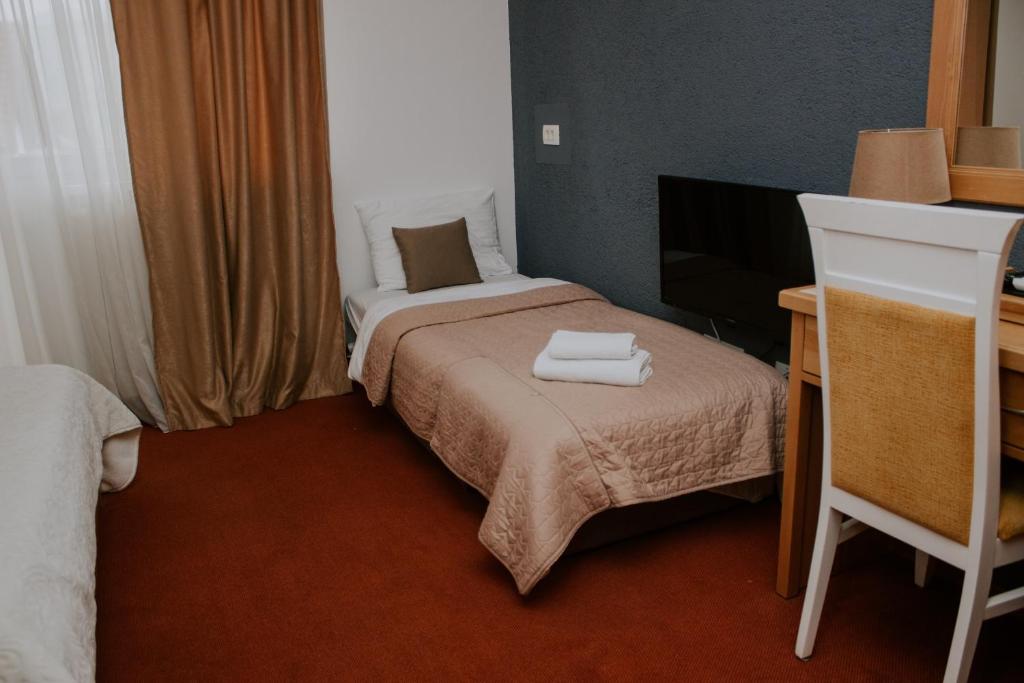 Hotel Serdar, situated in Mojkovac approximately 27 miles from Durdevica Tara Bridge, offers comfortable accommodations with an inviting garden and convenient access to various amenities. Each of its 4-star rooms features free Wi-Fi, air conditioning, and private bathrooms equipped with complimentary toiletries. Guests can enjoy a range of dining options within the property, including a bar and a restaurant serving both continental and full English/Irish breakfasts. Rooms come standard with a desk, flat-screen TVs featuring satellite channels, and computers upon request. An outdoor terrace provides scenic views of the city, perfect for relaxation. For families, Hotel Serdar includes family rooms and facilities suitable for guests with disabilities. The property also boasts a children's play area ideal for those looking to explore nearby ski resorts or engage in cycling activities. Conveniently located near Podgorica Airport, Hotel Serdar offers a paid airport shuttle service, making travel arrangements effortless.