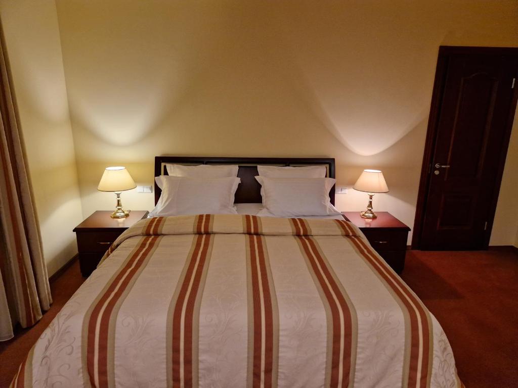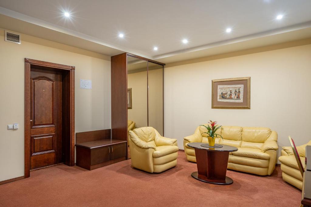 Each spacious room at Hotel Sfinksas features amenities such as desks, flat-screen TVs, private bathrooms equipped with bed linen and towels, safes, and complimentary Wi-Fi access. Some rooms offer balconies for additional relaxation. A refrigerator is included in every room to enhance convenience during stays.