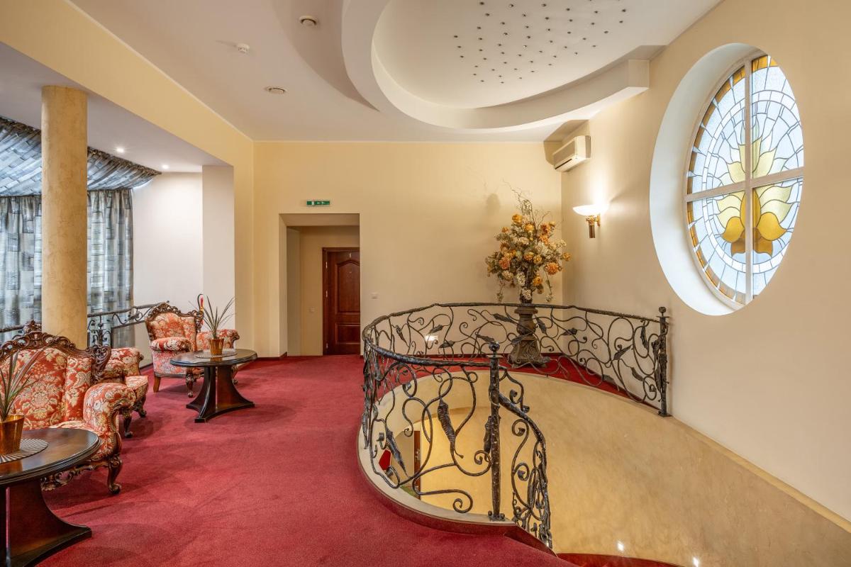 Hotel Sfinksas, situated just 1.8 miles from the Kaunas Zalgiris Arena, offers a charming stay with its lush gardens, ample free private parking, and inviting terraces. This modern accommodation, conveniently located within walking distance of the Orthodox Church of the Annunciation, Carmelitian-Holy Cross Catholic Church, and Kaunas Choral Synagogue, provides guests with a perfect blend of urban conveniences and serene surroundings.