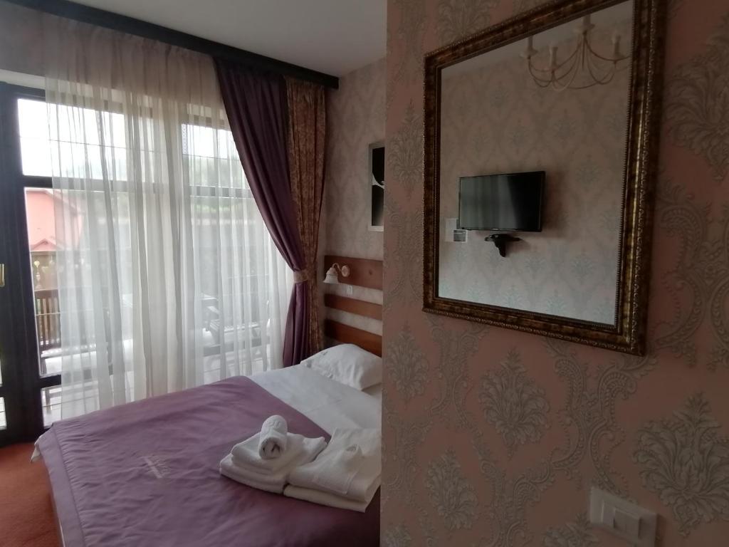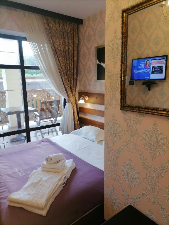 The charming Shalé Zoloto Pivkovar & Ríčka in Slavianske offers luxurious accommodation, complete with a verdant garden, a cozy bar, and a vibrant shared lounge. Situated amidst picturesque landscapes, this chalet boasts breathtaking mountain vistas, making every stay truly unforgettable. Each unit comes equipped with everything needed for comfort and convenience, featuring a wardrobe, flat-screen TVs, private bathrooms, and bed linens. Guests can enjoy a serene patio overlooking lush gardens and the stunning view of the surrounding mountains. The chalet's 24-hour front desk ensures seamless service, while complimentary Wi-Fi keeps everyone connected during their stay. For those seeking culinary delights, the onsite family-friendly restaurant serves à la carte and continental breakfast options, offering a variety of delicious treats such as pancakes, fresh fruits, and refreshing juices. After a long day on the slopes, guests can relax by the outdoor fireplace, enjoying the warmth and ambiance. Just 18 miles away, visitors will find the picturesque Shypit Waterfall, perfect for nature enthusiasts. Couples particularly appreciate the prime location, where they gave the establishment a commendable rating of 9.2 out of 10 for a two-person trip.