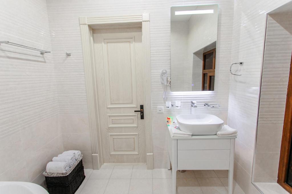 Shaxzoda Elite Hotel in Samarkand offers comfortable family rooms equipped with air conditioning, private bathrooms, balconies, and free WiFi. Guests can enjoy a sun terrace, garden, restaurant, bar, fitness room, and additional amenities such as a lounge, coffee shop, outdoor seating area, and free on-site parking. The hotel is located near Samarkand International Airport, offering a paid shuttle service and tour desk. The modern restaurant serves Asian cuisine, while room service and breakfast in the room are highly appreciated. The hotel features free WiFi, airport shuttle services, and pets are welcome.