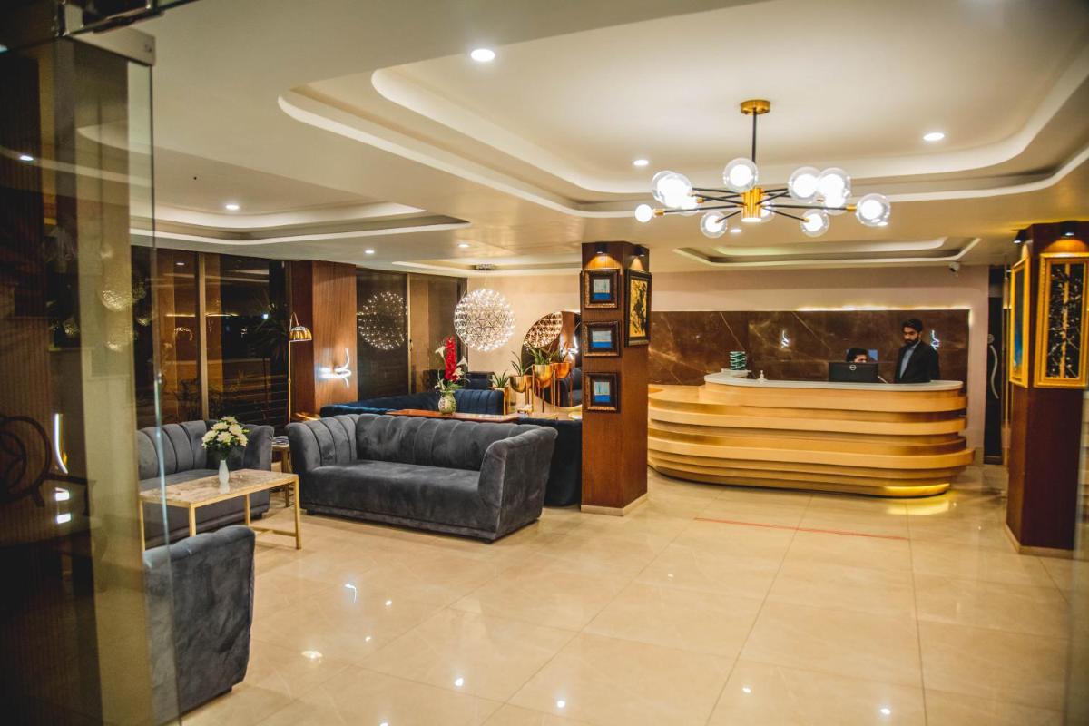 Shelton's Ambassador, located approximately 3.8 miles from the iconic Shah Faisal Mosque in Islamabad, offers 4-star accommodation featuring a welcoming bar. This luxurious establishment boasts amenities such as a 24-hour front desk, complimentary airport transportation, and free Wi-Fi across the property. Guests enjoy access to various dining options, including a restaurant serving local and Asian cuisines, along with vegetarian and halal menu choices. Rooms feature modern conveniences like air conditioning, desks, flat-screen TVs, private bathrooms, bed linens, towels, and terraces offering scenic views of the city. For those seeking relaxation, the property includes a rooftop bar where visitors can unwind. Additionally, the hotel offers full English/Irish, Asian, or vegetarian breakfasts daily. Conveniently situated near Safa Gold Mall and Rose & Jasmine Gardens, Islamabad International Airport is just under 21 miles away.