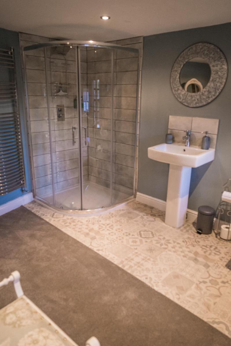 The guest enjoyed the luxurious shower and bed.