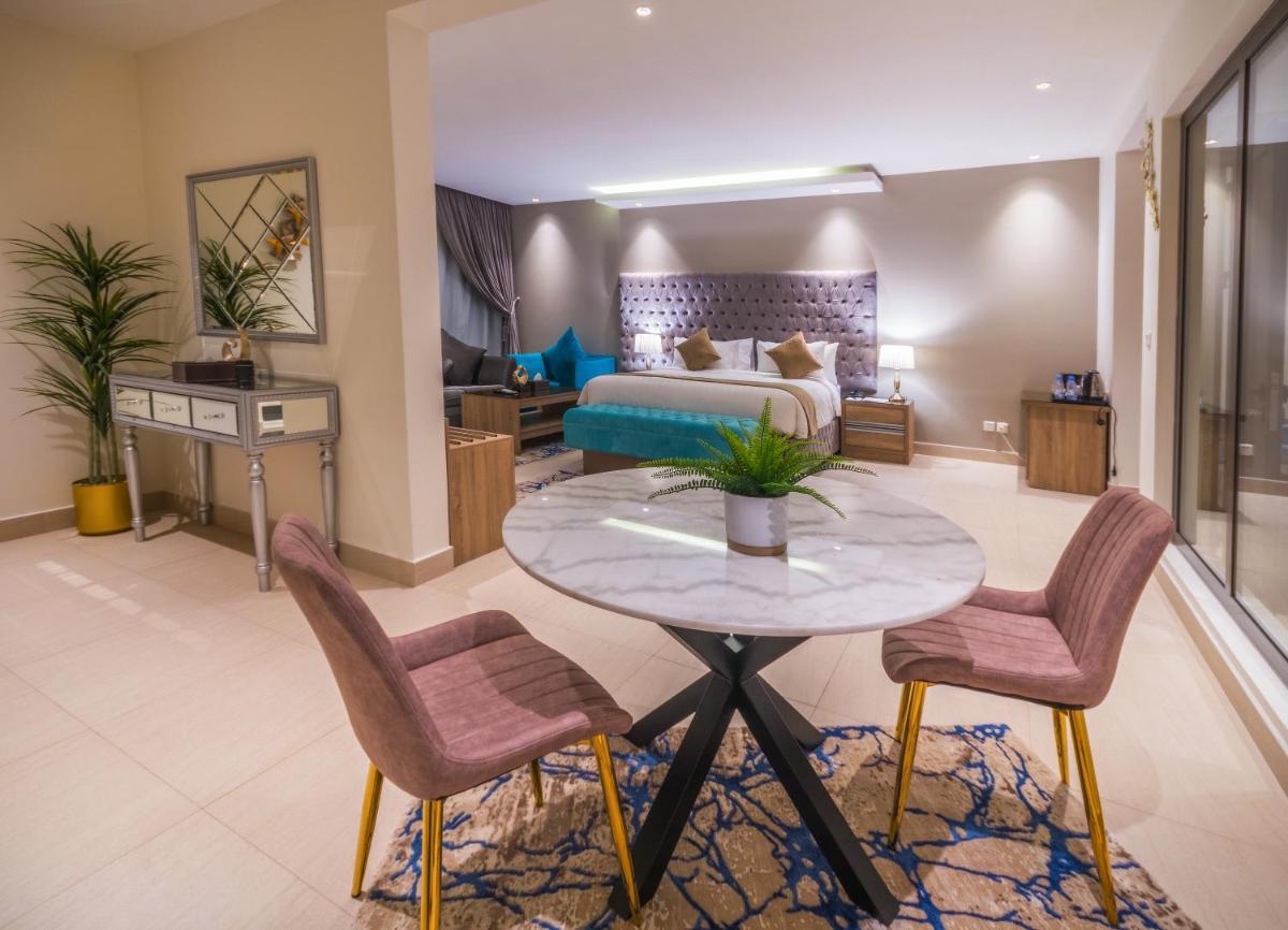 The Address Palace Apartments in Dammam features amenities such as a rooftop pool, a fitness center, and an indoor pool. Guest rooms come equipped with air conditioning, a seating area, a flat-screen TV with satellite channels, a safe, and a private bathroom with a walk-in shower, slippers, and a hairdryer. The building also includes family rooms, a dedicated nursery space, and facilities for guests with disabilities.