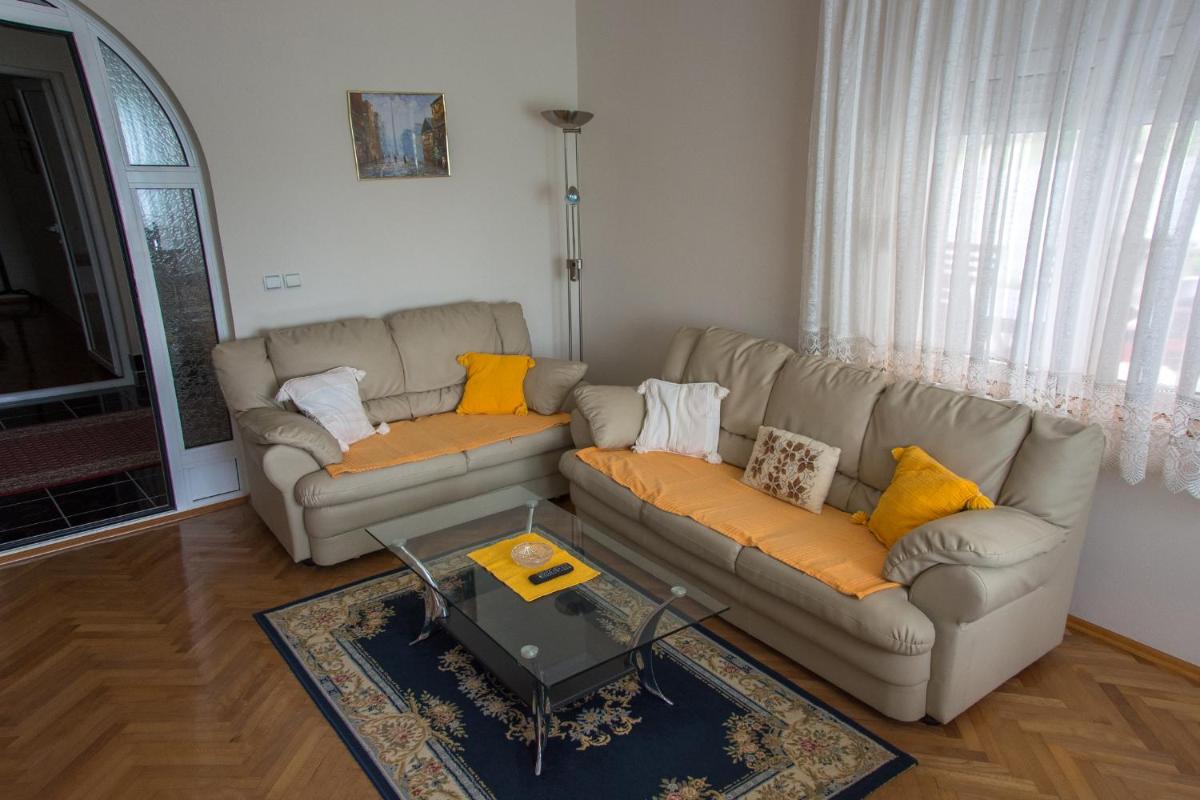 Location of the house, peace in the air and around us, dog Meda, yard with wonderful grass, kitchen, comfortable beds, very kind owner and...