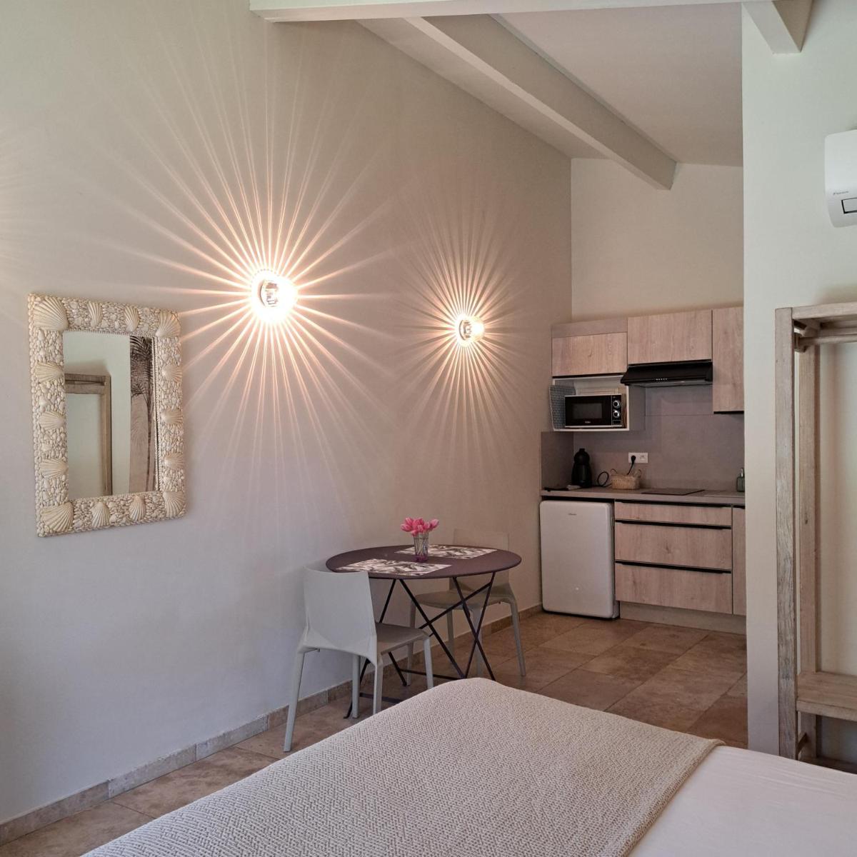The Songes d'été in Bonifacio offers an adults-only accommodation featuring a luxurious pool with breathtaking views, a serene garden, and a delightful BBQ facility. Guests can enjoy their stay by lounging on the spacious patio, sipping cocktails, or simply unwinding under the sun's rays. Each room comes equipped with modern amenities such as air conditioning, free private parking, and complimentary Wi-Fi. The apartments feature beautifully furnished terraces, fully-equipped kitchens with appliances like microwaves, dining areas, and flat-screen TVs. Private bathrooms boast showers and hair dryers, along with additional comforts like a toaster, refrigerator, stove-top, coffee machine, and kettle. An inviting café is just a stone's throw away, offering à la carte and traditional Italian breakfast choices complete with fresh pastries and juices. Conveniently located near Bonifacio Port, which is approximately 4.3 miles away, and the historic Former Chapel of the Trinity, which lies about 6.2 miles from the property. Figari-Sud Corse Airport is situated roughly 14 miles from the residence. Couples appreciate the prime location, giving them a perfect base for exploring the beautiful island of Corsica.