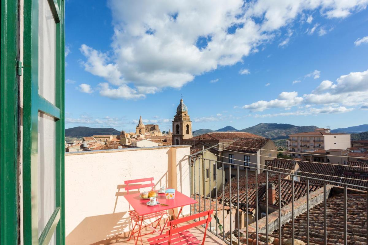The pretty apartment has a very central location and impresses through its rooftop terrace with views of the roofs of Castelbuono.