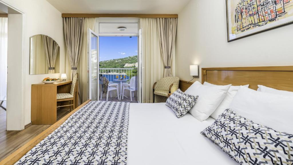 Within walking distance lies the lively Lapad Bay promenade, where shopping, dining, and entertainment options abound. Dubrovnik International Airport is approximately 16 miles away, while Dubrovnik Port is just 1.6 miles from the hotel. An airport shuttle service is also available upon request.