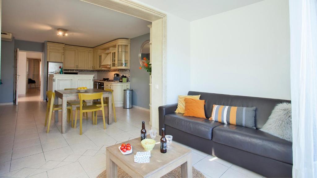 The accommodation is composed of 1 bedroom, a living room, a kitchen equipped with a dishwasher and a coffee machine, and 1 bathroom with a shower and a hairdryer. The accommodation also includes towels and bed sheets. The property offers a view of the sea.