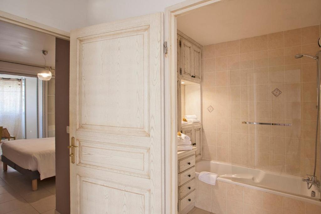 The bathroom includes a bathtub, making it suitable for accommodating guests with special needs.