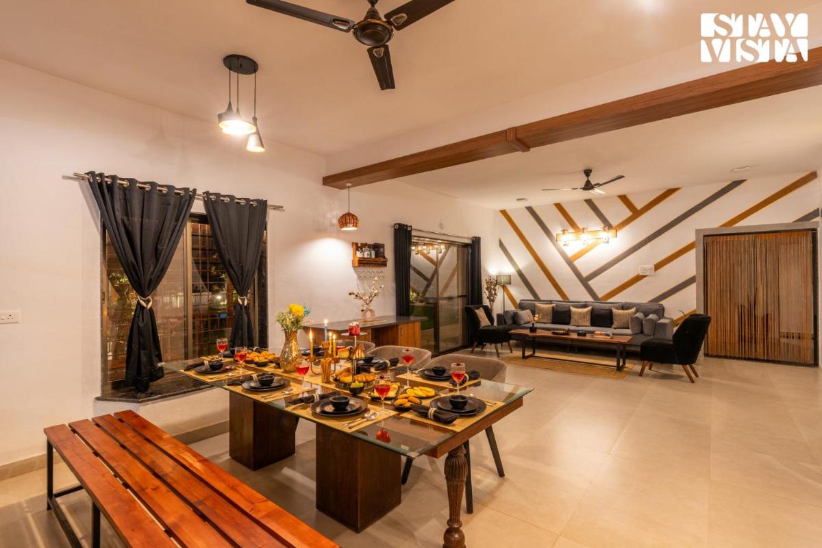 For those seeking warmth and tranquility, the villa also offers a cozy outdoor fireplace where guests can gather and share stories under the stars. Whether relaxing by the pool, enjoying a meal al fresco, or simply unwinding after a day’s adventures, StayVista ensures a truly unforgettable experience.