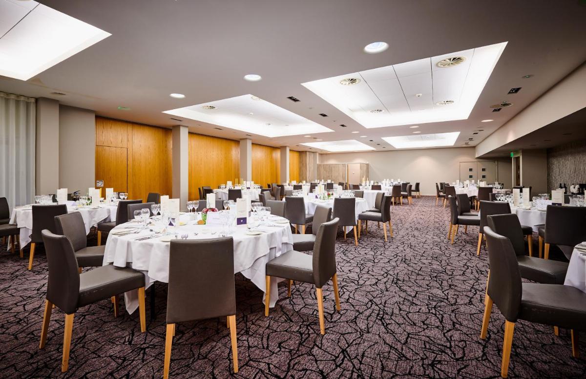 With its award-winning business facilities, the hotel boasts 24 fully-equipped meeting rooms designed to accommodate various events and conferences. For those seeking entertainment, the Abbey Craig restaurant serves up a diverse menu featuring both traditional Scottish fare and locally-sourced ingredients, while the modern lounge bar provides a perfect spot for drinks or light refreshments.