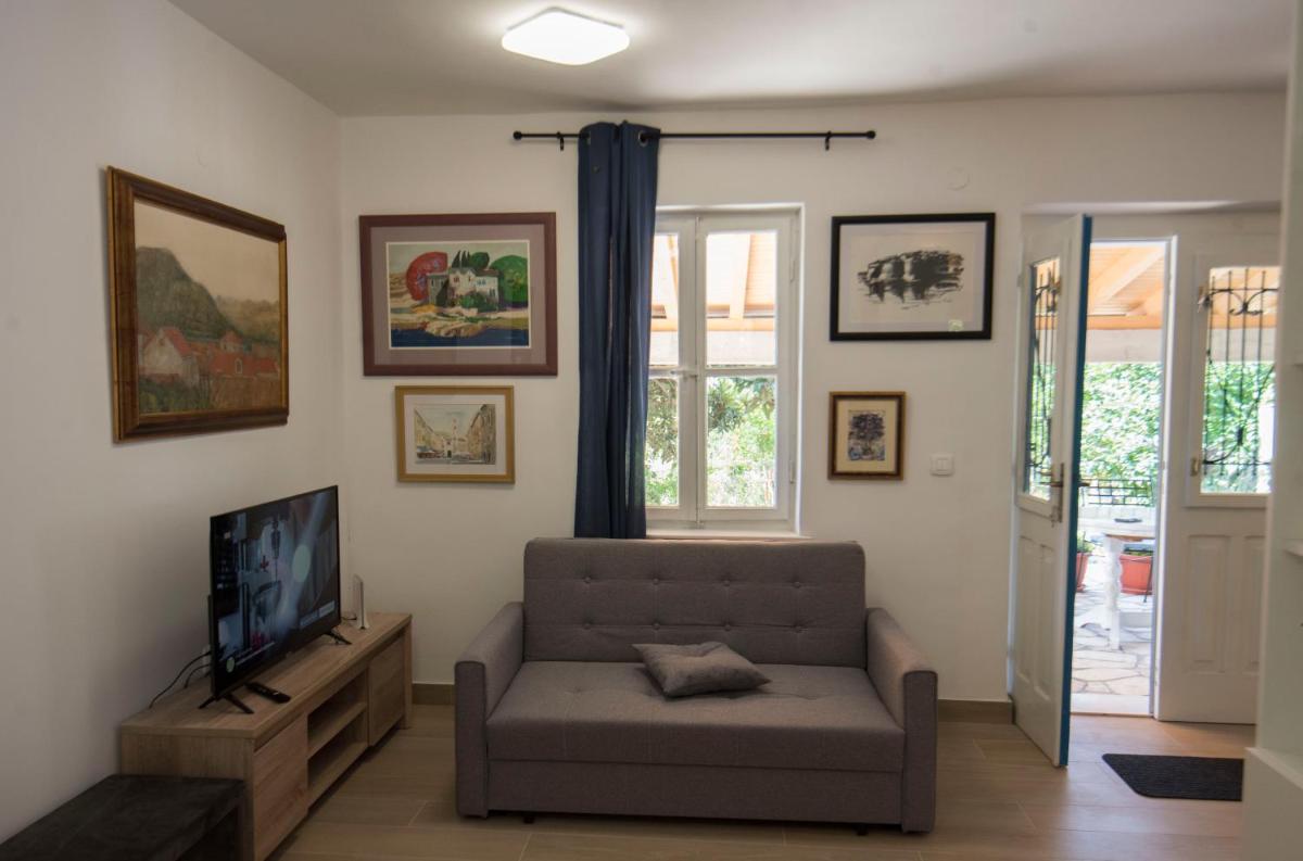 The studio apartment ROZA in Ston offers a cozy 4-star accommodation with a private bedroom and bathroom. Featuring a spacious living room equipped with a sofa bed and dining area, guests will appreciate the fully-equipped kitchen. Enjoy the comfort of a sun terrace and a scenic garden with panoramic views, along with outdoor seating, bicycle parking, and barbecue facilities. Conveniently located near Dubrovnik Airport, just 17 minutes' walk away, this apartment boasts free private parking and is highly praised for its garden, terrace, and prime location.