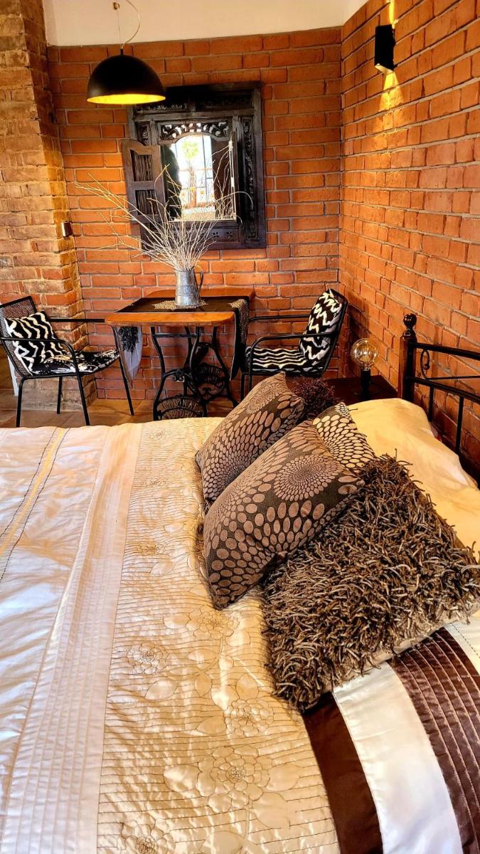A spacious, rustic, lower floor apartment, with a kitchenette (including fridge and microwave) and an outdoor area for barbecuing.