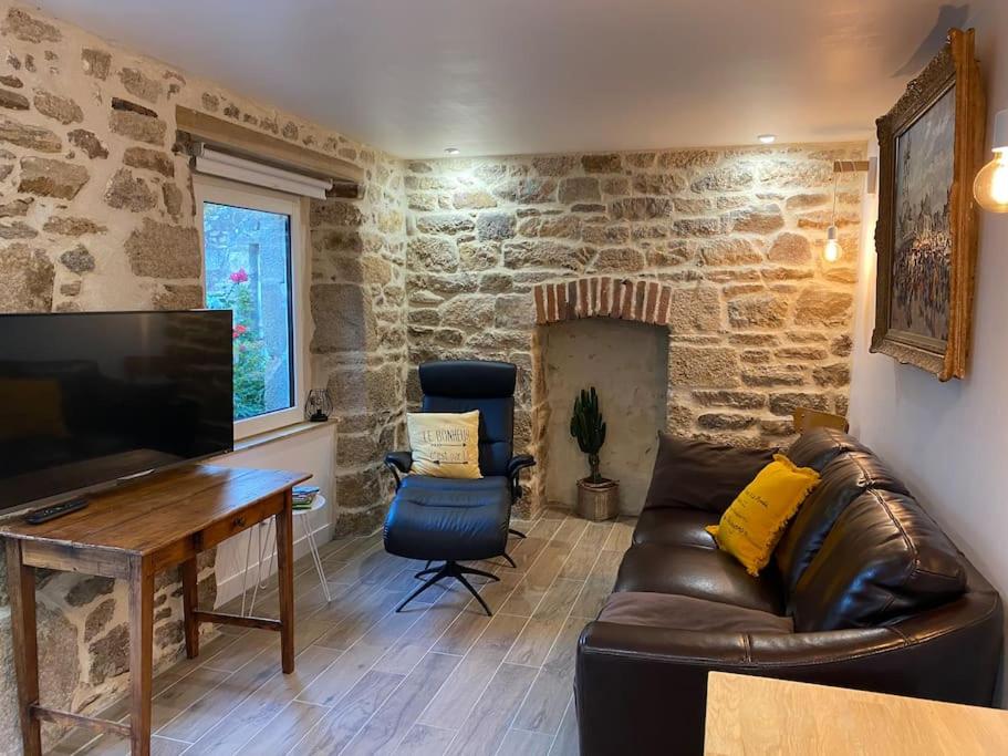 The charming accommodation located in Guingamp boasts a cozy studio perfectly situated in the heart of the city, offering easy access to various attractions while providing peace and tranquility amidst bustling surroundings. Featuring a spacious terrace, guests can enjoy serene moments overlooking their new home. Free private parking ensures convenience for those traveling by car, allowing them to easily explore the nearby areas without worrying about traffic.