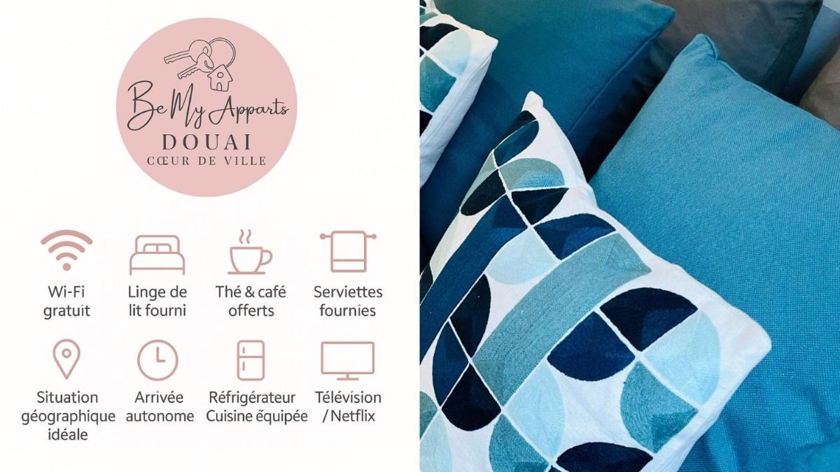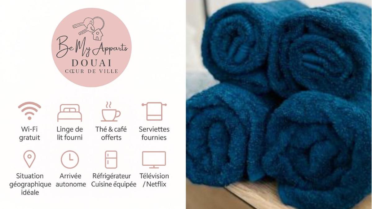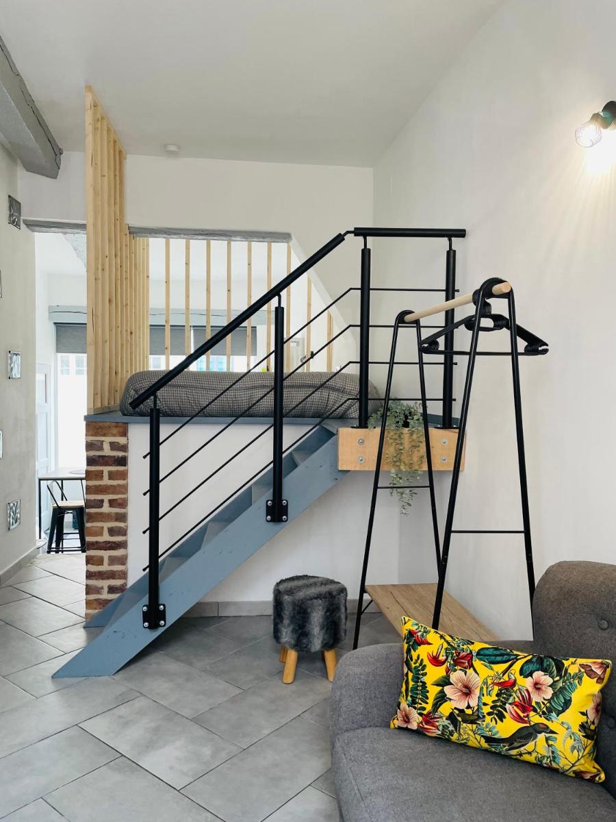 BE MY APPARTS, Studio de charme "LE CARILLON", Douai, Coeur de ville, boasts a newly renovated studio featuring a charming ambiance in the heart of Douai. This inviting space offers both free Wi-Fi access and convenient onsite parking, making it ideal for travelers seeking a comfortable retreat close to bustling train stations and cultural landmarks.