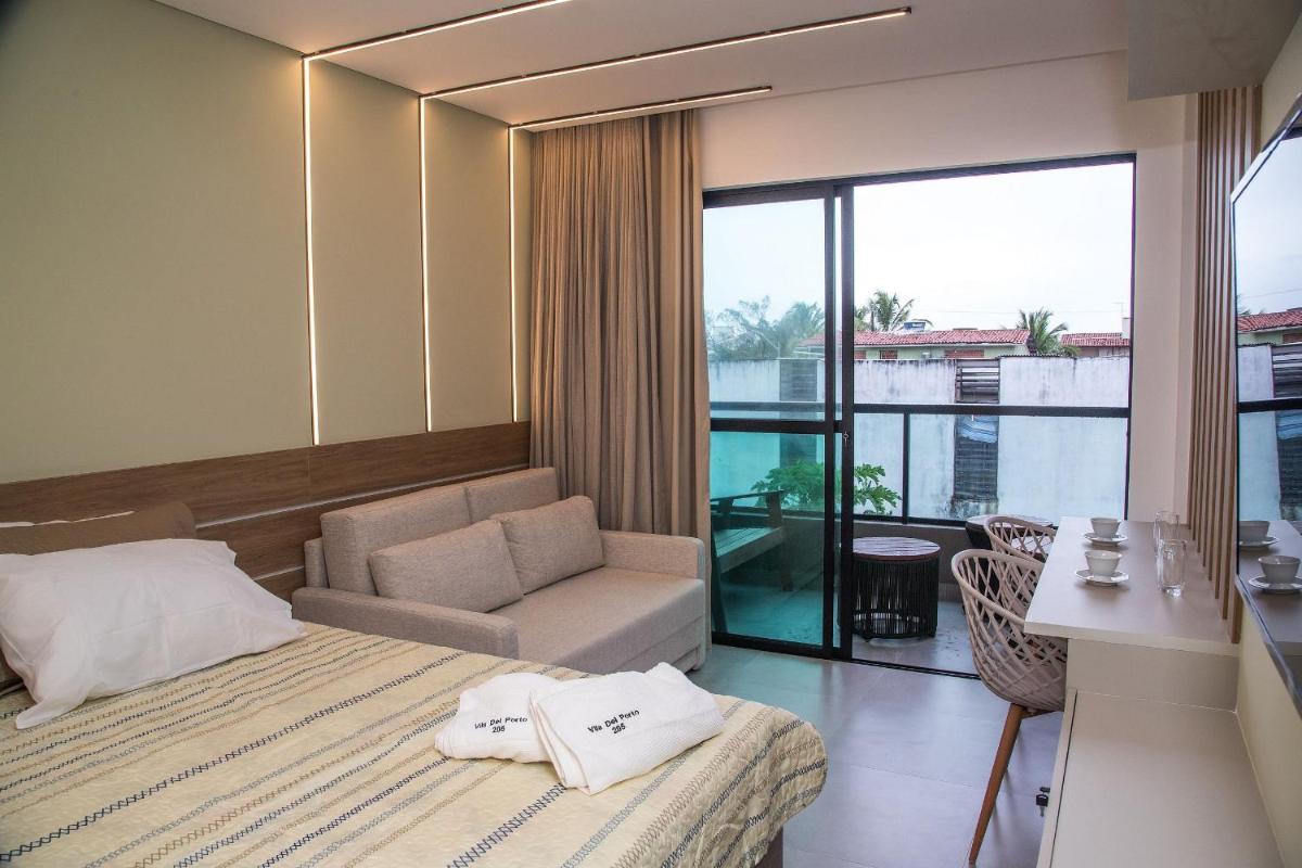 Moderno Estúdio à um bloco da Praia, located near Merepe Beach in Porto de Galinhas, offers comfortable accommodation with access to a sauna. Guests enjoy a terrace, free private parking, and complimentary Wi-Fi. Enjoy a spacious 2-bedroom apartment featuring air conditioning, a fully equipped kitchen with amenities such as a microwave and coffee maker, and a modern bathroom with a shower and hairdryer. Non-smoking rooms are available, ensuring a pleasant stay for everyone. Kids can swim in the onsite kids pool. Just 2 minutes' walk from the beach, Cupe Beach awaits. Nearby, Porto de Galinhas Beach is approximately half a mile away. For those traveling to nearby Recife / Gilberto Freyre International Airport, a paid airport shuttle service is available. Conveniently situated within walking distance, this property caters to both tourists and locals seeking a relaxing vacation experience.