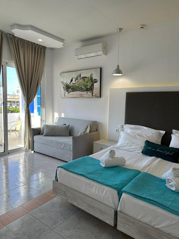 Apollonio Suites & Rooms Faliraki Rhodes offers free WiFi, family rooms, beachfront, free parking, apartments, free on-site parking, balcony, private bathroom, view, bathtub or shower, air conditioning, kitchenette.