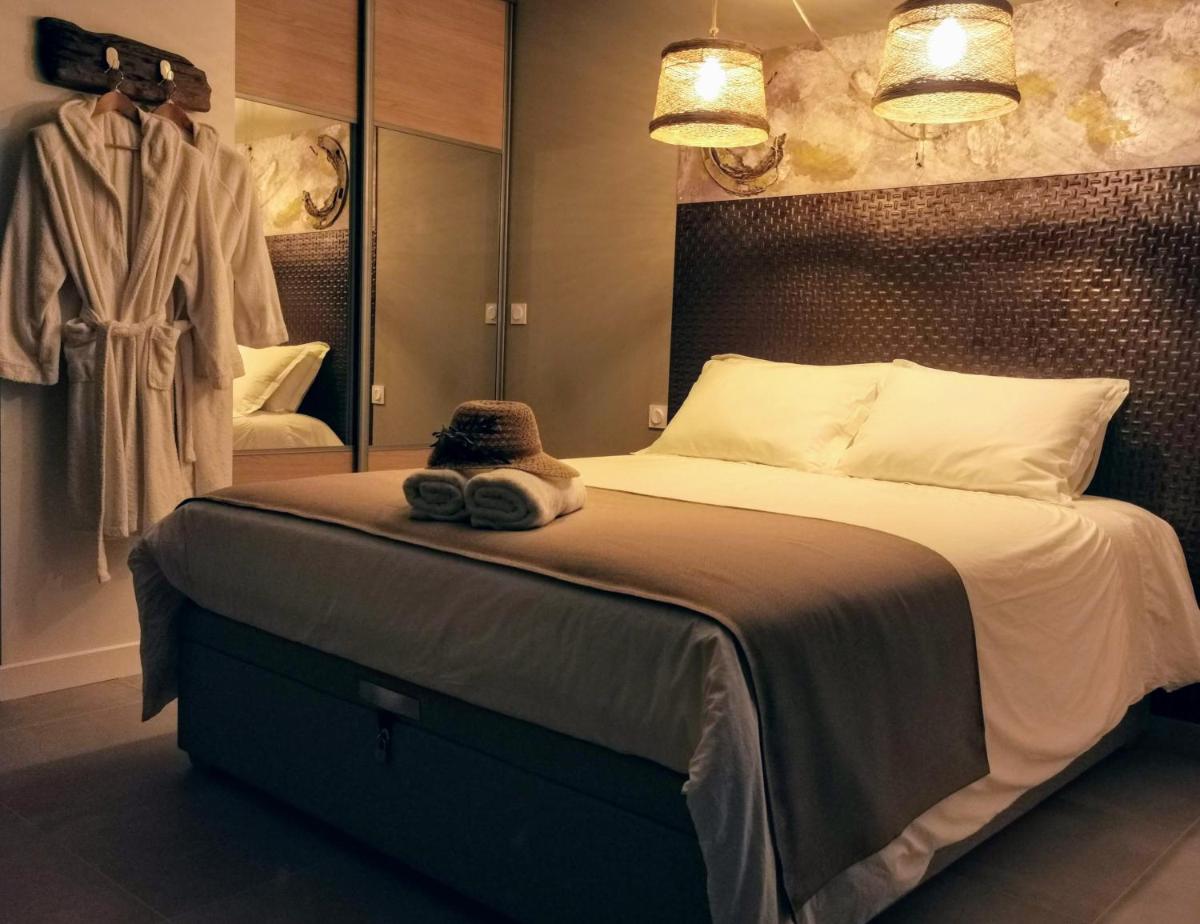 The luxurious suite at Suite l'inattendu with its exclusive spa offers guests a serene retreat amidst stunning gardens and a tranquil swimming pool. Enjoy free Wi-Fi throughout, enhancing both work and relaxation. Features include an inviting hot tub, ample indoor/outdoor seating, and a well-equipped kitchen. With easy access to nearby attractions such as Abbaye de Fontfroide and Fonserannes Lock, this property provides a perfect getaway within reach of historical sites and nature reserves.