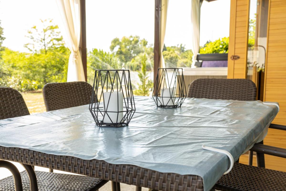 And if the idea of indulging in some pampering isn't enough, SunnySide nyaraló also offers the convenience of having groceries delivered right to your doorstep, allowing you to cook up a storm using the barbecue facilities available on site. With its outdoor pool, private beach area, and water sports facilities, there's no shortage of activities to keep everyone entertained during their stay.