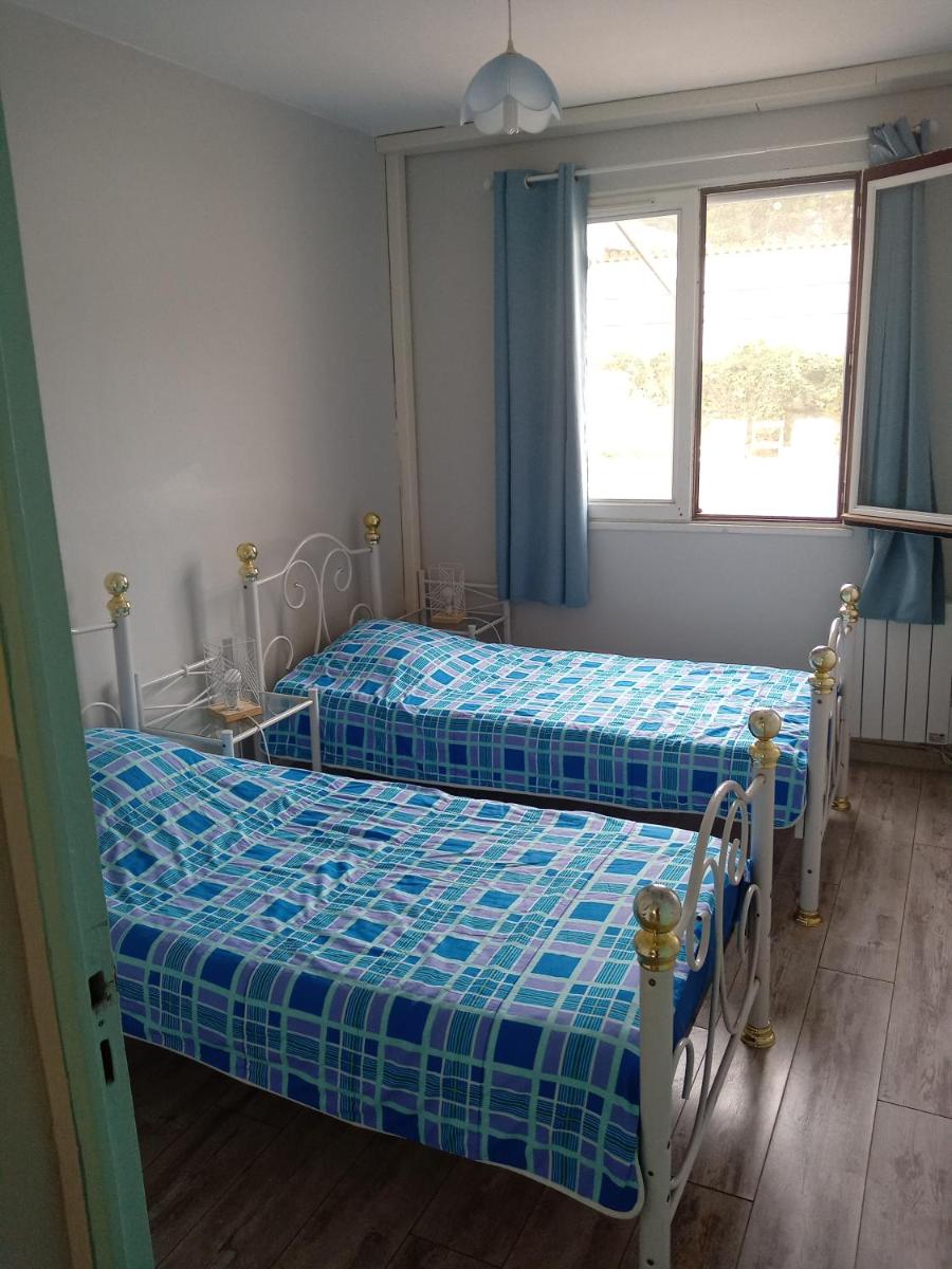 The T3 Frontignan ville dans un quartier calme apartment boasts a serene setting near the picturesque town center of Frontignan. This charming residence features two bedrooms, a spacious living room adorned with a flat-screen TV, and a fully equipped kitchen equipped with a dining area. Guests can enjoy privacy thanks to complimentary Wi-Fi and on-site parking.