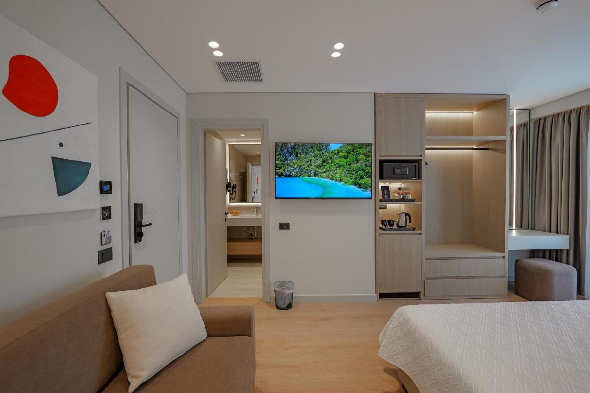 The luxurious Hotel Teuta, situated in the picturesque town of Sarandë, boasts an impeccable reputation among its guests. This 4-star establishment offers a comfortable stay with amenities such as a modern bar, air conditioning throughout, free Wi-Fi, and complimentary room service. Each room comes with a private bathroom and features an electric tea pot, ensuring convenience during your stay. Guests appreciate the spacious closets and flat-screen TVs, while those staying in certain units even enjoy balconies.