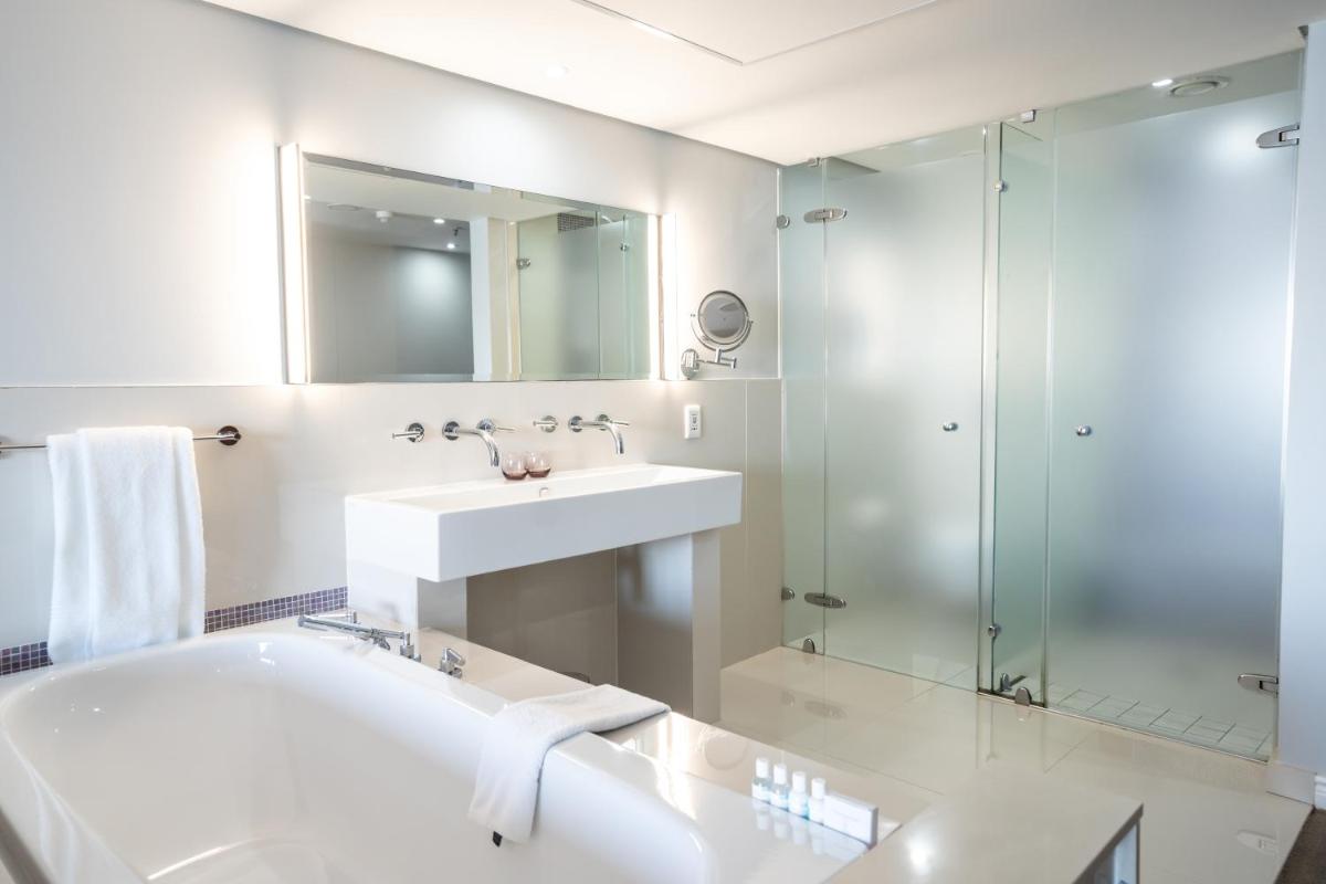 Blaauwberg Beach Hotel is situated on the beachfront in Bloubergstrand, offering spacious accommodations with free high-speed WiFi throughout. Guests can enjoy breathtaking views of Table Bay, including iconic landmarks such as Table Mountain and Robben Island. Each unit features amenities including flat-screen TVs with satellite channels, tea-and-coffee-making facilities, desks, semi-private bathrooms equipped with baths and free toiletries, hairdryers, wardrobes, safes, and ironing services.