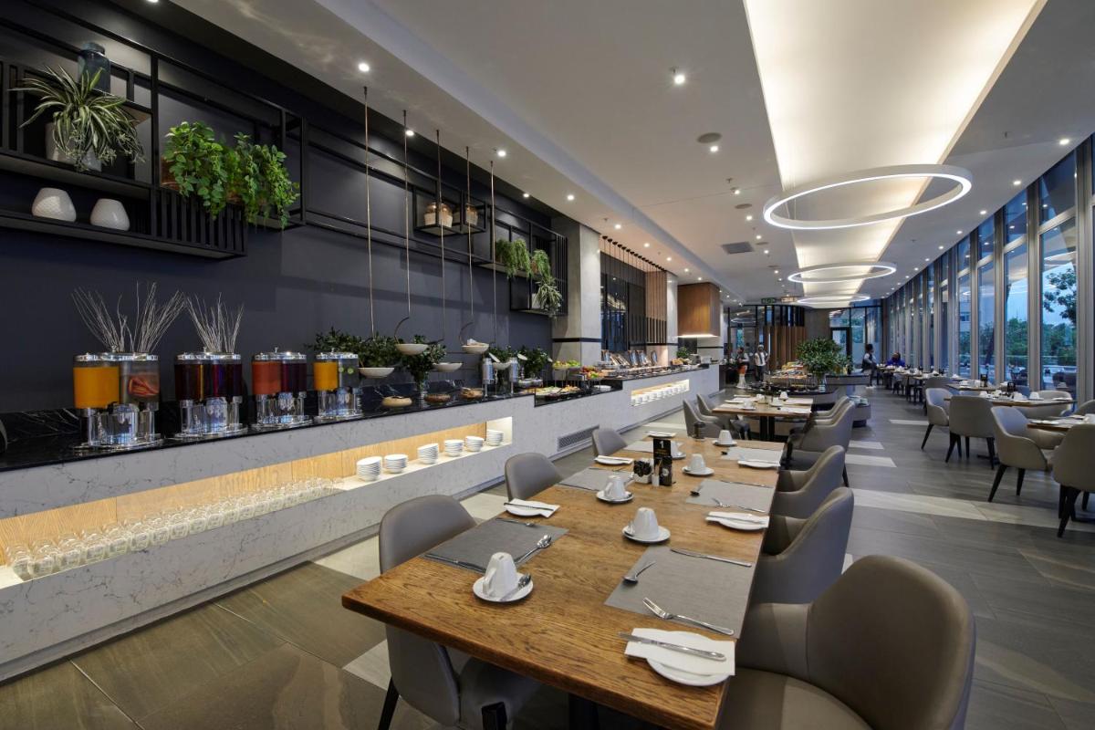 The Capital on the Park, located in Johannesburg, boasts luxurious accommodations within walking distance of Gautrain Sandton Station. This premier hotel features an inviting outdoor swimming pool, free private parking, and a state-of-the-art fitness center. Guests appreciate the complimentary access to a well-stocked wellness facility, offering a variety of equipment and amenities to enhance their stay. With its convenient location, the hotel provides easy access to numerous attractions such as the National Museum of Military History, Old Fort Prison, and Delta Environmental Centre, making it an ideal choice for both business and leisure travelers. The Capital on the Park offers spacious guestrooms equipped with modern conveniences, including a flat-screen TV, a safe, and a mini-fridge. For those seeking relaxation, the hotel’s rooftop terrace offers stunning city views. Breakfast is served in a delightful setting, allowing guests to savor a range of menu options, whether they prefer traditional or more adventurous choices. The hotel’s dedicated business center and complimentary Wi-Fi ensure that guests have everything they need to conduct business or work comfortably during their visit. Additionally, the hotel’s proximity to major shopping centers like Parkview Mall and the nearby golf course makes it an excellent option for those looking to explore the city further. With its prime location and extensive facilities, The Capital on the Park promises a memorable stay in Johannesburg.