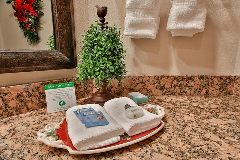 The Bavarian-influenced The Inn at Christmas Place offers an enchanting holiday experience, nestled between the bustling holiday store and the lively family entertainment center. This charming inn features an inviting outdoor pool with a 29-yard waterslide and a spacious garden, making it perfect for both relaxation and fun. Guests can enjoy a delicious breakfast buffet, featuring homemade omelets, Belgian waffles, and a variety of pastries, along with freshly brewed coffee and a selection of hot and cold cereals.