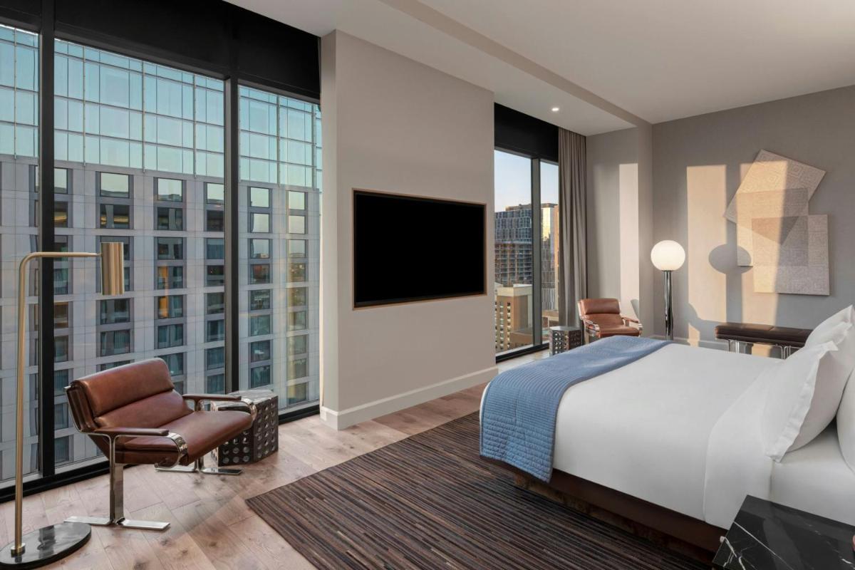 The Joseph, a Luxury Collection Hotel, Nashville, offers an unparalleled luxury experience nestled in the heart of Tennessee’s vibrant capital city. Situated just 7 minutes away from iconic venues such as Bridgestone Arena, this grand hotel provides a perfect blend of modern amenities and historical charm. Guests can enjoy sweeping views of the surrounding landscape while taking advantage of the extensive range of services offered by The Joseph, which includes a private parking facility, free Wi-Fi throughout the premises, and access to a state-of-the-art fitness center.