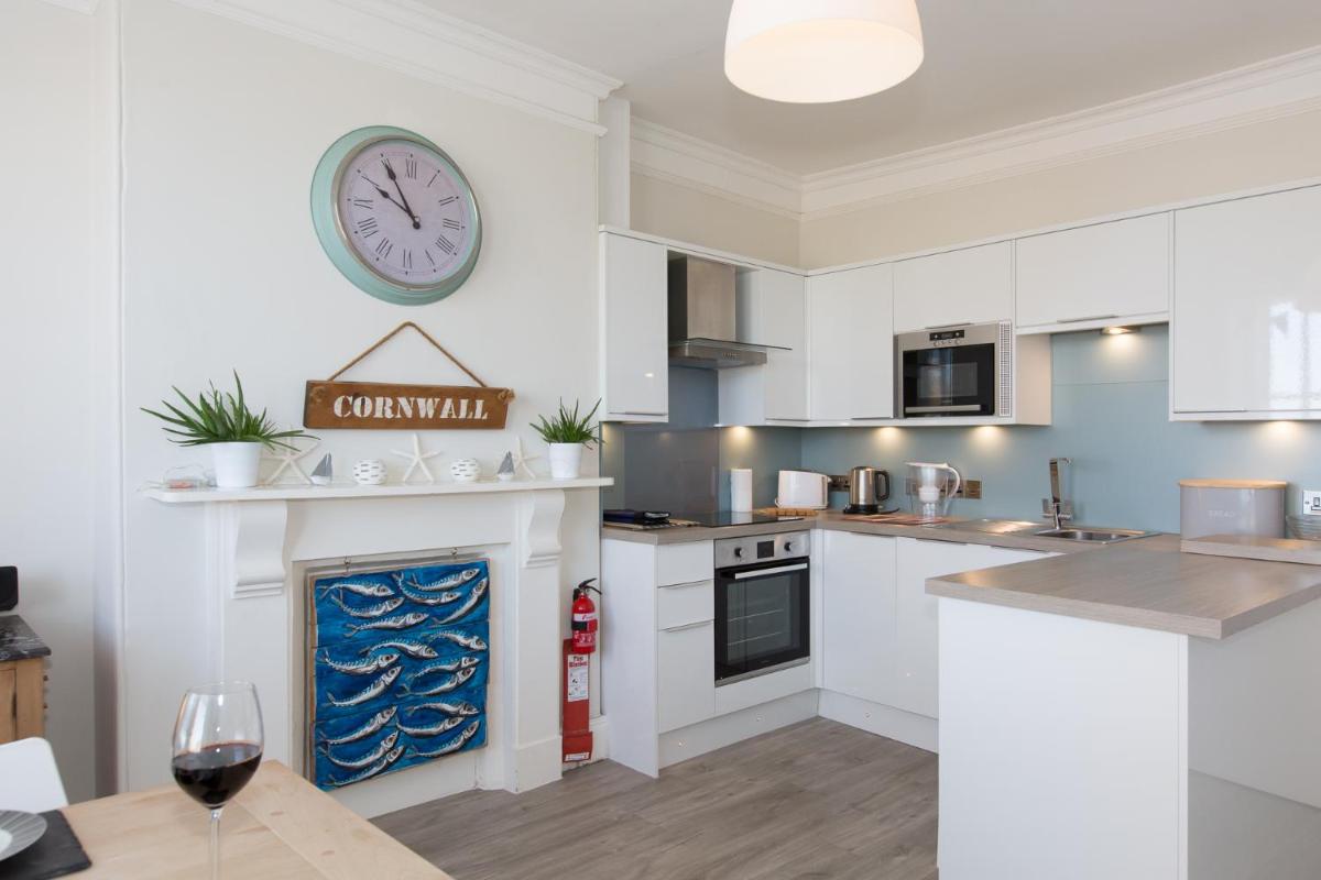 The Loft is a charming beachfront property nestled in St Ives, boasting stunning sea and garden vistas just 300 meters from Porthmeor Beach and 400 meters from Porthminster Beach. This spacious accommodation features complimentary WiFi access, making it ideal for guests seeking convenience during their stay. The apartment boasts two distinct living areas, a dining space, one well-appointed bedroom, and a luxurious bathroom equipped with a walk-in shower. Additional amenities include a DVD player and a cozy fireplace, ensuring a comfortable retreat amidst the coastal charm.