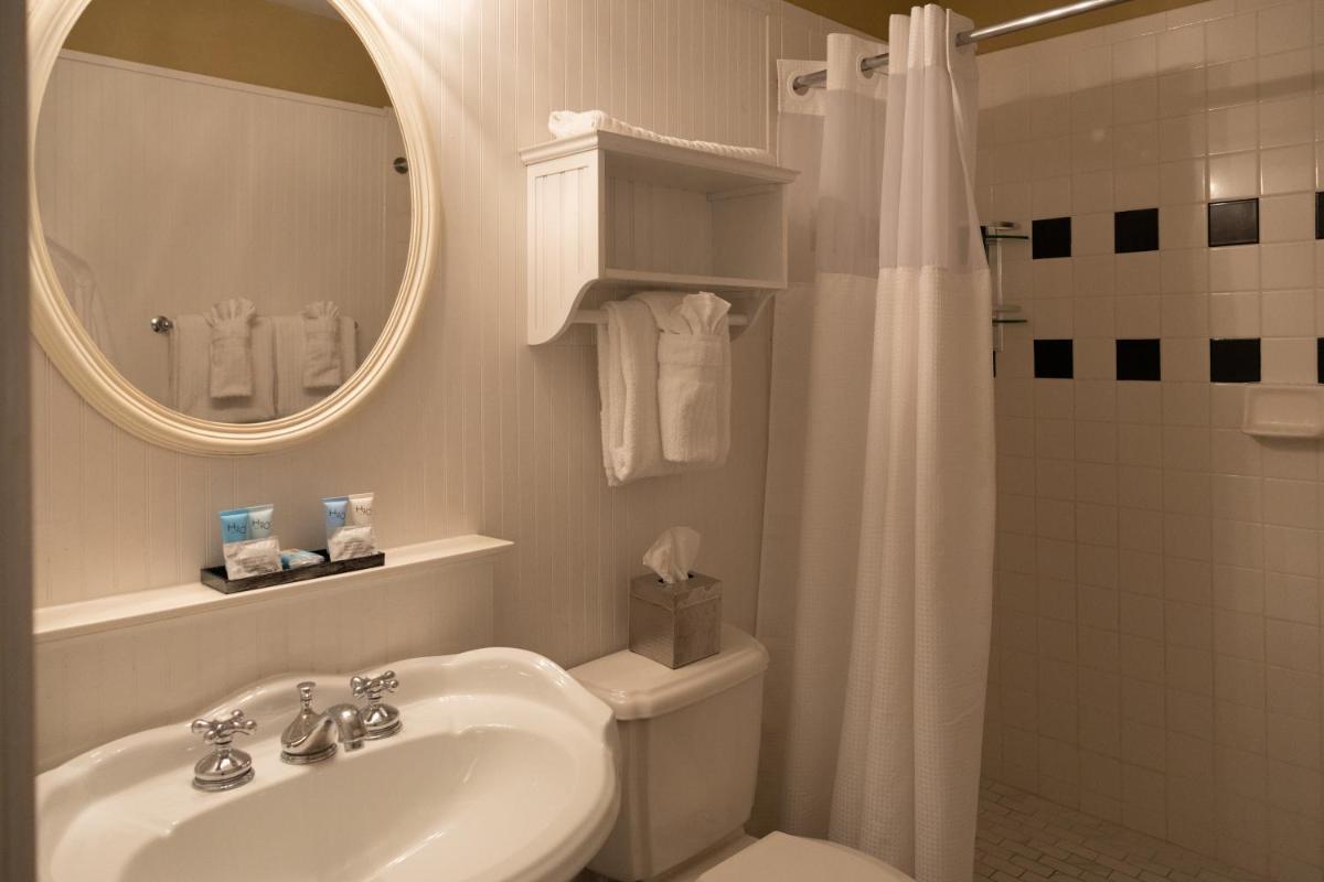 Rooms at The Marshall House come equipped with all necessary amenities, including a flat-screen cable TV, a small refrigerator, and a decorative fireplace. Guests will also find a private bathroom with a pedestal sink, ensuring comfort and privacy throughout their stay.