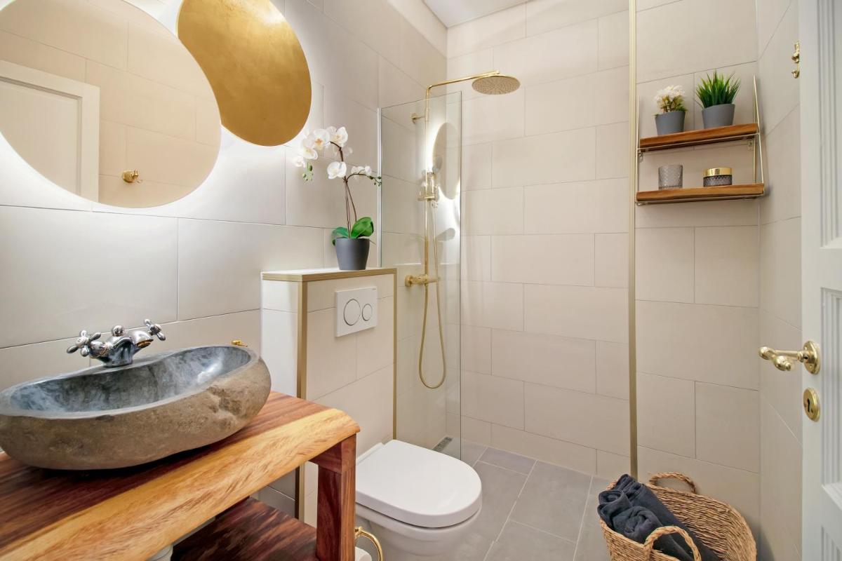 Elegantly furnished and equipped with modern amenities, the apartment comprises two bedrooms, a spacious living room, and a fully functional kitchen complete with a dining area. Guests can enjoy their meals while taking in the picturesque surroundings, thanks to the inclusion of a flat-screen TV. The space is generously sized at 130 square meters, providing ample comfort and privacy for up to four guests. An inviting bathtub and a well-equipped washroom further enhance the stay.