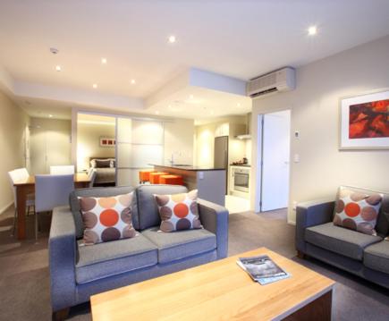 The self-contained apartments come with a fully equipped kitchen including dishwasher, a fridge and a stove. Additional amenities include laundry facilities and a flat-screen TV.
