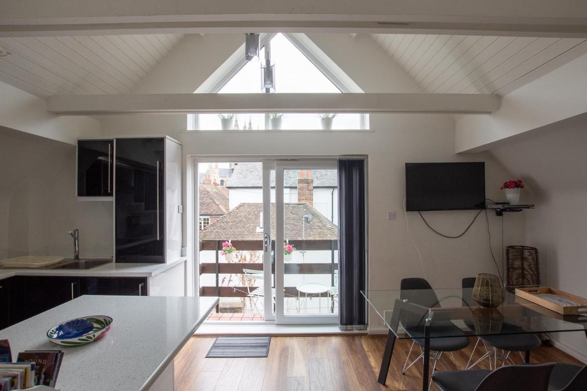 The Penthouse Canterbury - Cathedral View offers guests a comfortable stay near Canterbury West Train Station, just 7 minutes' walk away. This luxurious apartment boasts a terrace and free Wi-Fi throughout, making it easy for travelers to connect and explore the area. The penthouse features a fully equipped kitchen with a dishwasher, oven, and washer/dryer, ensuring convenience during stays. Guests can relax on the balcony and enjoy the stunning views of Canterbury Cathedral, which is within walking distance.