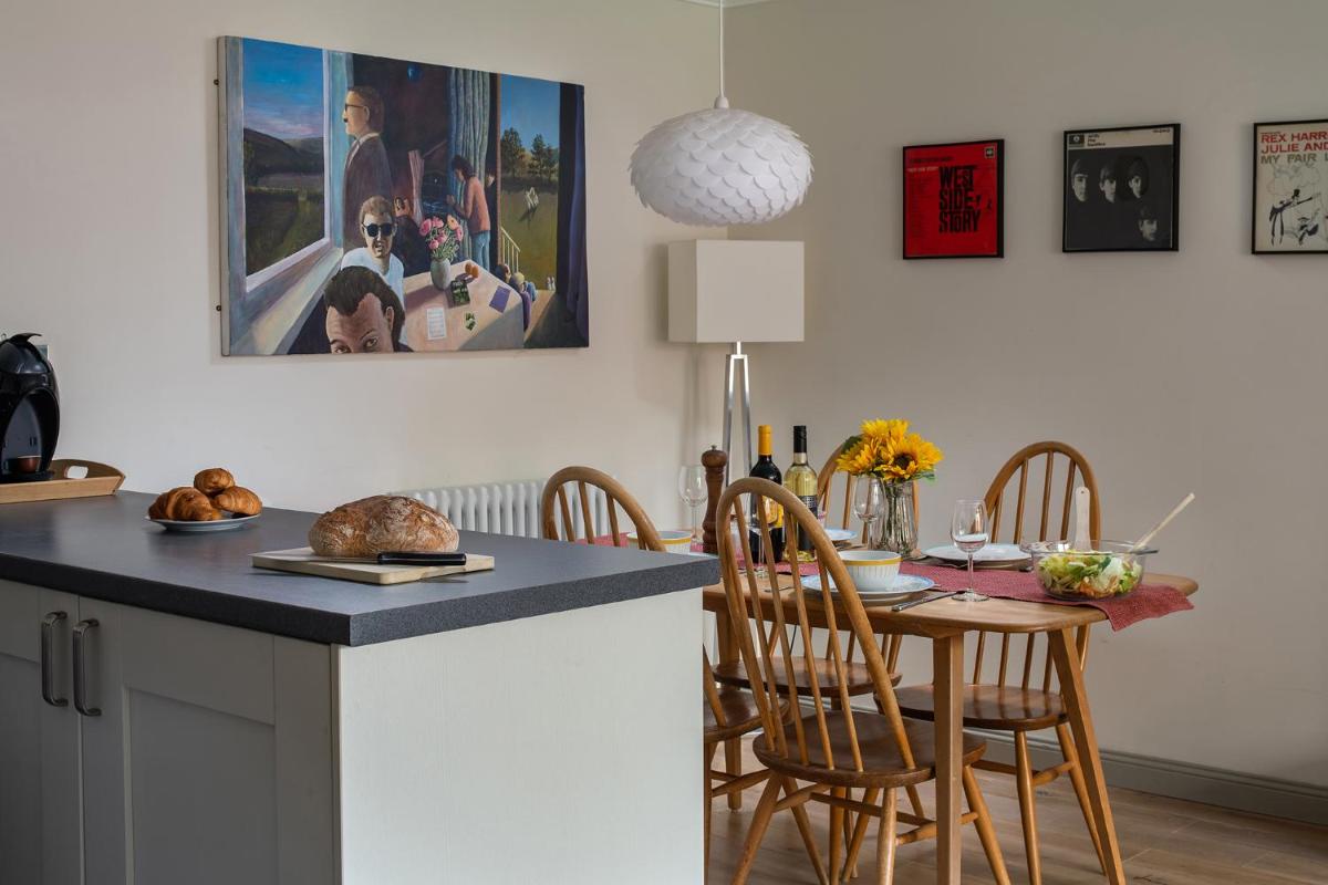The Tackhouse, boasting spa amenities and complimentary private parking, sits conveniently near The Maltings Theatre & Cinema and just shy of 16 miles from Melrose Abbey. Nestled between historic attractions such as Etal Castle and Chillingham Castle, this charming vacation home offers a picturesque view through its terraced gardens and expansive lawn. Spacious and inviting, the property boasts two cozy bedrooms, a comfortable living room furnished with a flat-screen TV, and an equipped kitchen perfect for preparing gourmet meals. A luxury bathtub and hot tub invite relaxation after a long day, while guests will appreciate the abundance of towels and bed linens ensuring a restful stay. The spacious garden provides ample space for outdoor activities, whether cycling or hiking in the surrounding countryside. Guests can also take advantage of the complimentary WiFi, making internet connectivity seamless during their visit. Enjoy culinary delights at the onsite restaurant, which serves delectable British fare. This exceptional accommodation is easily accessible via free on-site parking and boasts a total floor area of 75 square meters. The nearest airport is Edinburgh International Airport, approximately 43 miles away.